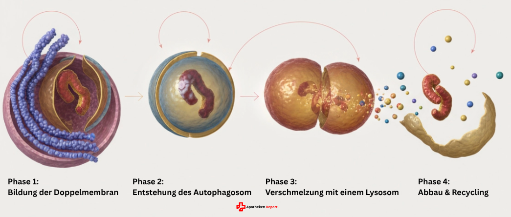 Dieser natürliche Prozess lässt sich in vier Phasen gliedern. Im Folgenden wird beschrieben, wie jede einzelne Phase dazu beiträgt, die Zellgesundheit sowie die Funktionsfähigkeit des Körpers zu erhalten: