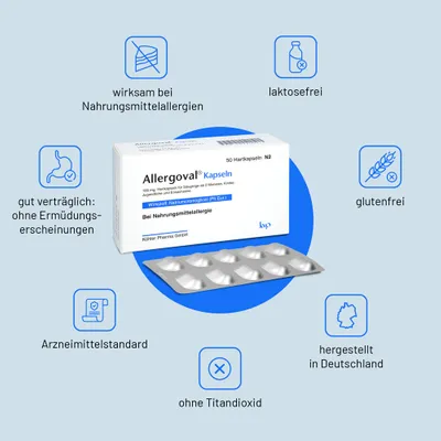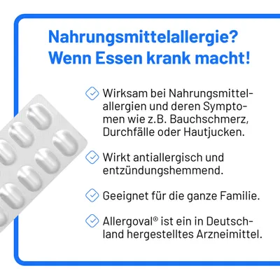 Allergoval® ist ein hochwirksames Antiallergikum, das eine effektive Therapie von Nahrungsmittelallergien bietet. Allergoval® lindert nachweislich effektiv Symptome wie Bauchschmerz, Übelkeit, Erbrechen, Krämpfe, Ekzeme, Nesselsucht und Hautjucken. Mit Allergoval® können Sie sicher sein, dass Sie effektiven Schutz bei Nahrungsmittelallergien erhalten – und das ganz ohne Ermüdungserscheinungen.