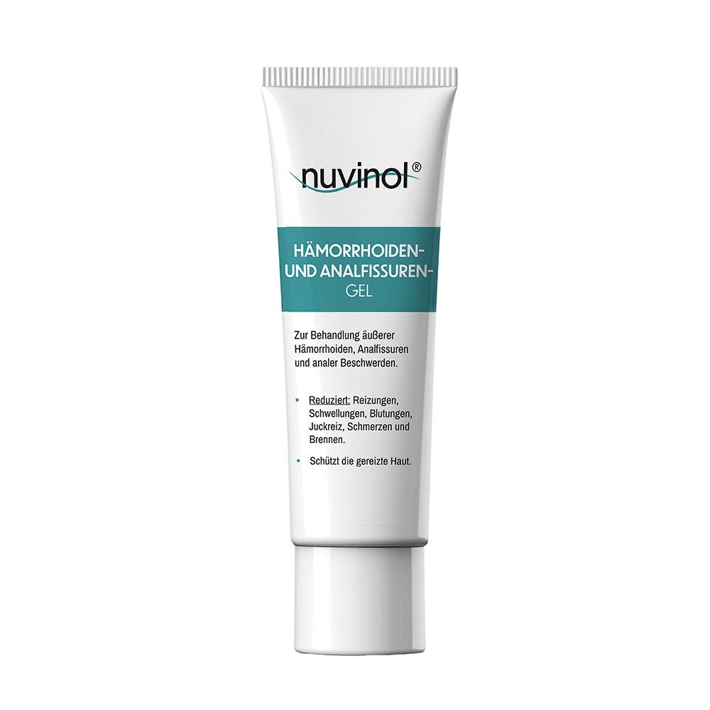nuvinol® Hämorrhoiden- und Analfissuren-Gel ist ein EU-zertifiziertes Medizinprodukt zur Behandlung äußerer Hämorrhoiden und Analfissuren. Das Gel lindert zuverlässig anale Beschwerden wie Juckreiz, Brennen, Schwellungen, Schmerzen, Reizungen und Blutungen.