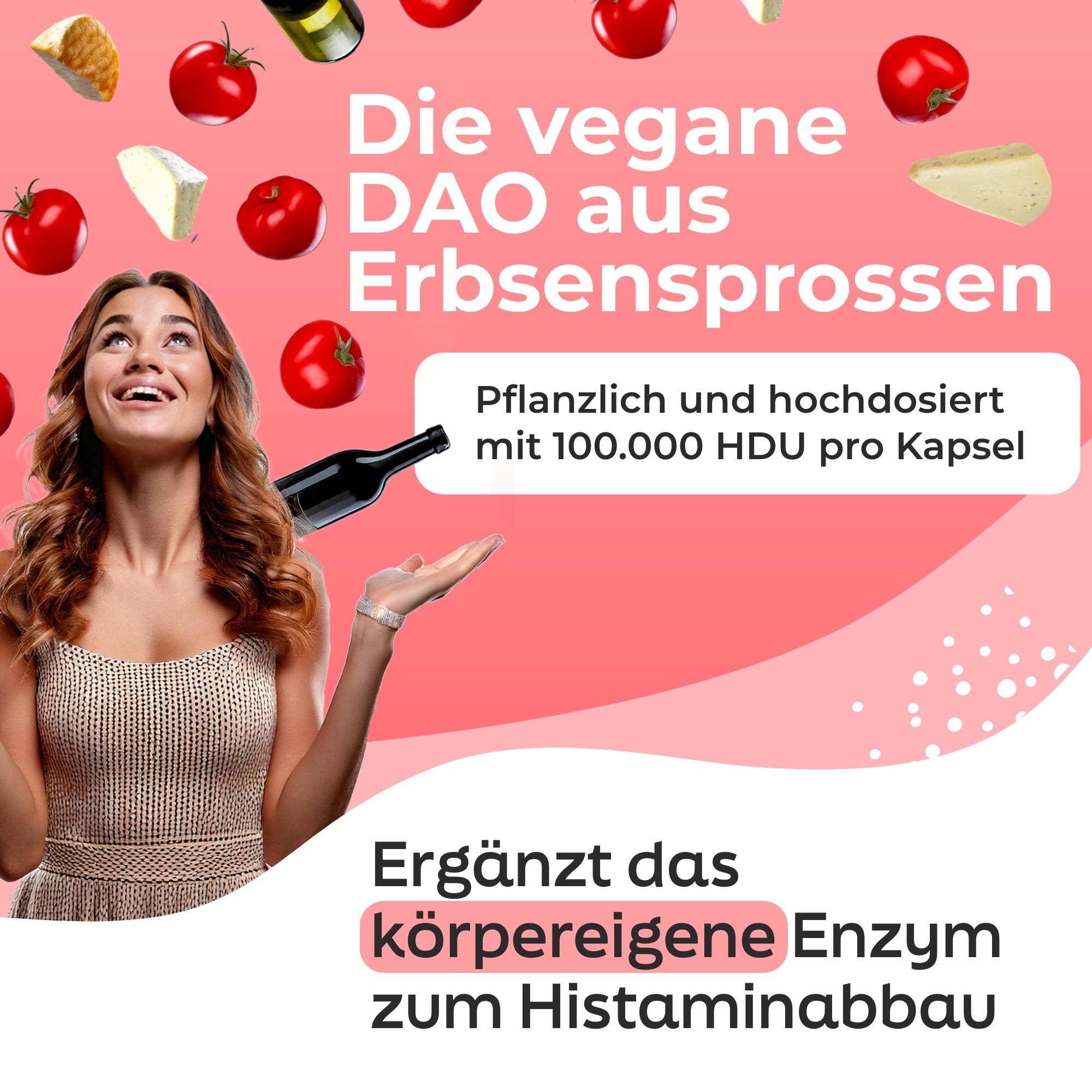 Histamin ist eine natürliche Verbindung, die in vielen Lebensmitteln vorkommt. Manche Menschen achten besonders auf ihren Histaminhaushalt und suchen nach gezielter Unterstützung im Alltag. Unsere DAO-Kapseln mit 100.000 HDU enthalten das Enzym Diaminoxidase, das im Körper eine Funktion im Histaminstoffwechsel übernimmt. Dank der magensaftresistenten Formulierung kann das Enzym genau dort freigesetzt werden, wo es benötigt wird. Vegan, ohne Allergene und aus nachhaltigen Zutaten – eine smarte Wahl für bewusste Ernährung.